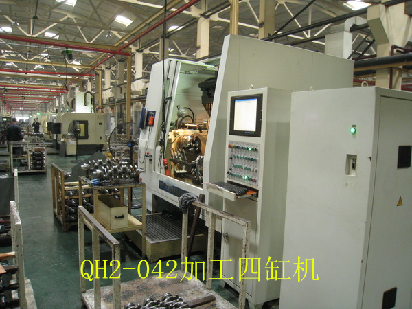 QH2-042變力曲軸圓角滾壓及滾壓校直機(jī)床(發(fā)明專利號(hào)1823602)是與武漢理工大學(xué)共同開發(fā)的一款高檔數(shù)控設(shè)備。該機(jī)床為九鉗直立布置,可以一次性對(duì)所有四缸曲軸完成的變力滾壓,自動(dòng)檢測(cè)和自動(dòng)滾壓校直的加工。該機(jī)床帶有測(cè)力器,自動(dòng)檢測(cè)工件零位,自動(dòng)檢測(cè)記錄工件加工情況和滾輪破碎自動(dòng)檢測(cè)等功能,可以完全保證工件的加工質(zhì)量。具備與著名德國(guó)的圓角滾壓設(shè)備制造商Hegenscheidt公司產(chǎn)品同樣的功能,具有極高的性價(jià)比。